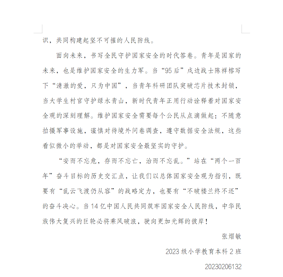 2023级小学教育本科2班 张熠敏