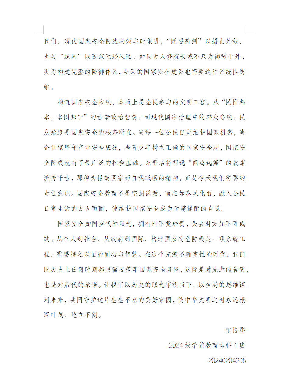 2024级学前教育本科1班 宋恪彤