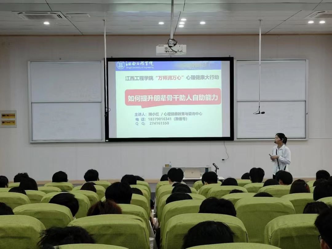 为提升朋辈骨干助人自助能力,筑牢校园心理健康防线,ylzzcom永利总站于5月9日在C208举办“万师润万心”心理健康教育主题讲座。本次讲座由学工处心理健康教育与咨询中心熊小红老师担任主讲,各班级朋辈骨干参与活动。现场气氛热烈,师生们积极参与,共同探讨心理健康的重要性和应对策略。